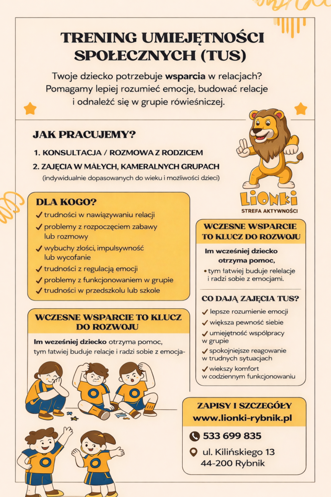 Trening Umiejętności Społecznych to zajęcia wspierające rozwój emocjonalny i społeczny dzieci.